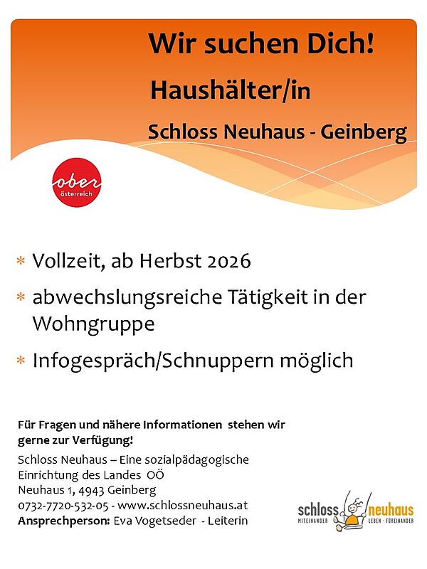 Neuhaus 1 I 4943 Geinberg I Telefon: +43 732 7720 - 532-05 I Fax: +43 732 7720 – 253299 I schlossneuhaus.post@ooe.gv.at